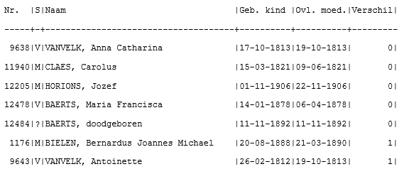 - de overlijdensdatum van de moeder en het aantal jaren er tussen.